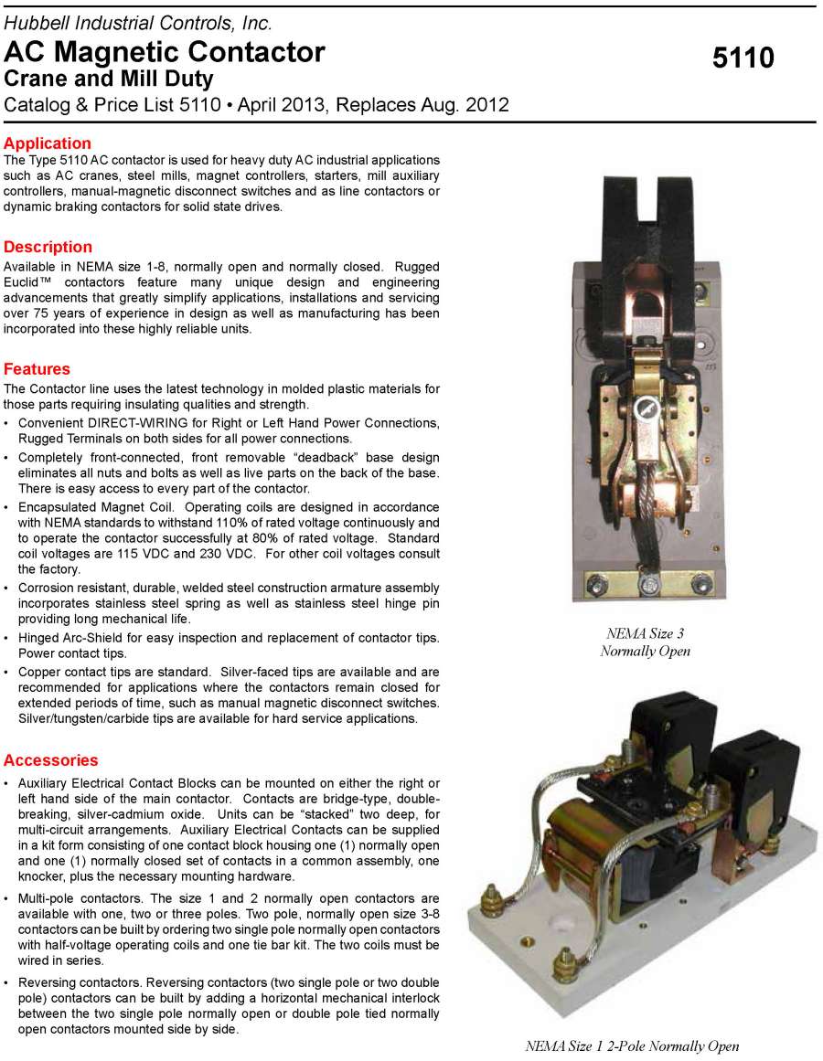 NEMA Rated AC Clapper Style Magnetic Contactors Type 5110