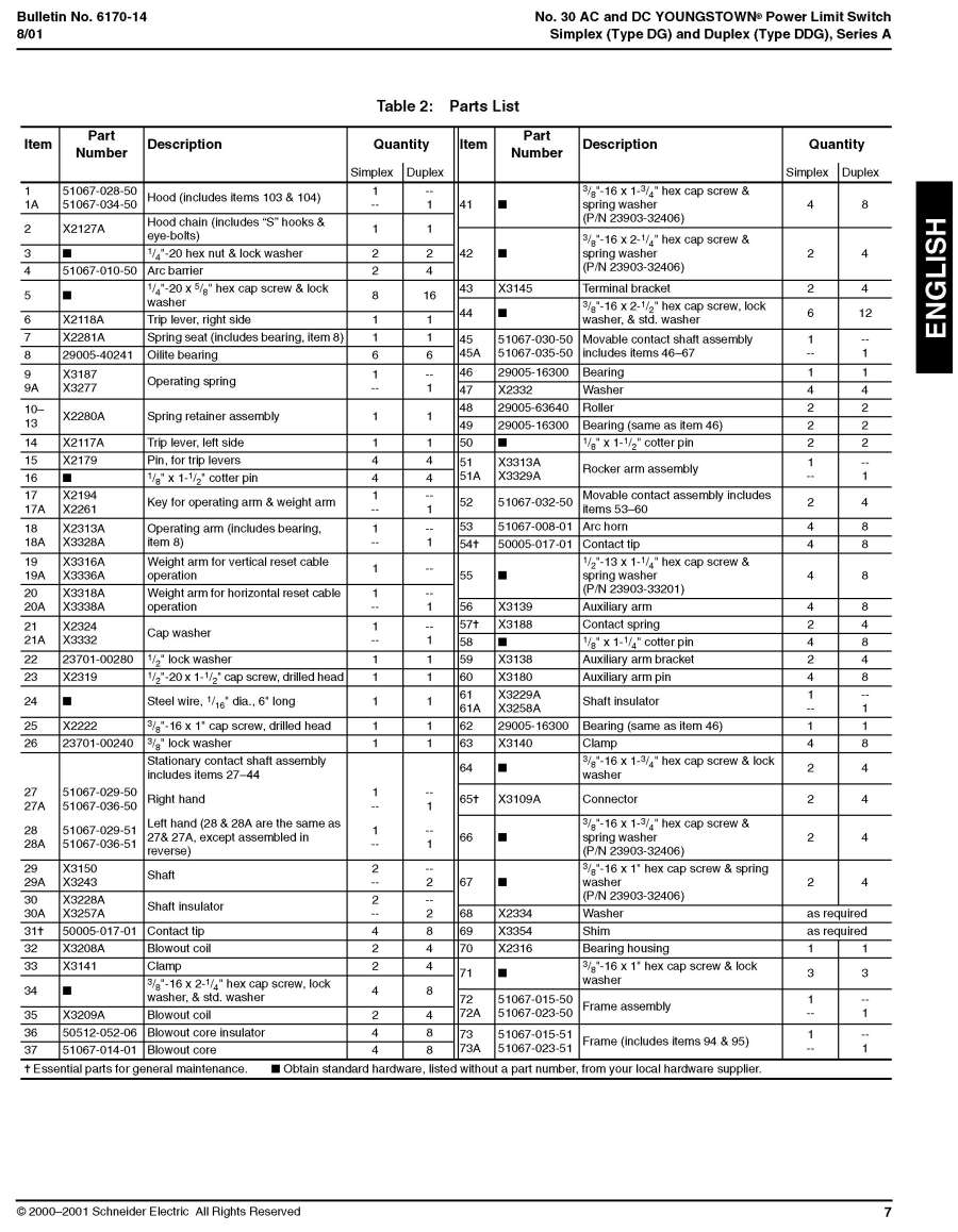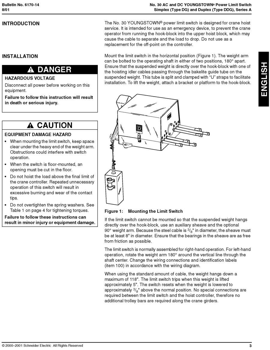 •   6170-14 Class 6170 No 30 Youngstown Limit Switch Simplex (Type DG) and Duplex (Type DDG), Series A